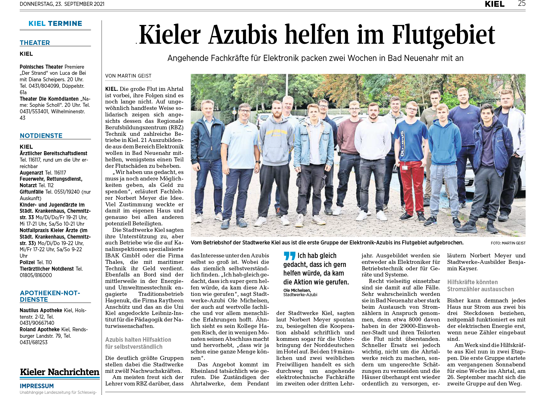 Wir sind stolz mitteilen zu können, dass einige unserer Auszubildenden aus dem Bereich Elektronik nach Bad Neuenahr fahren werden, um bei dem Beheben der Flutschäden zu helfen.