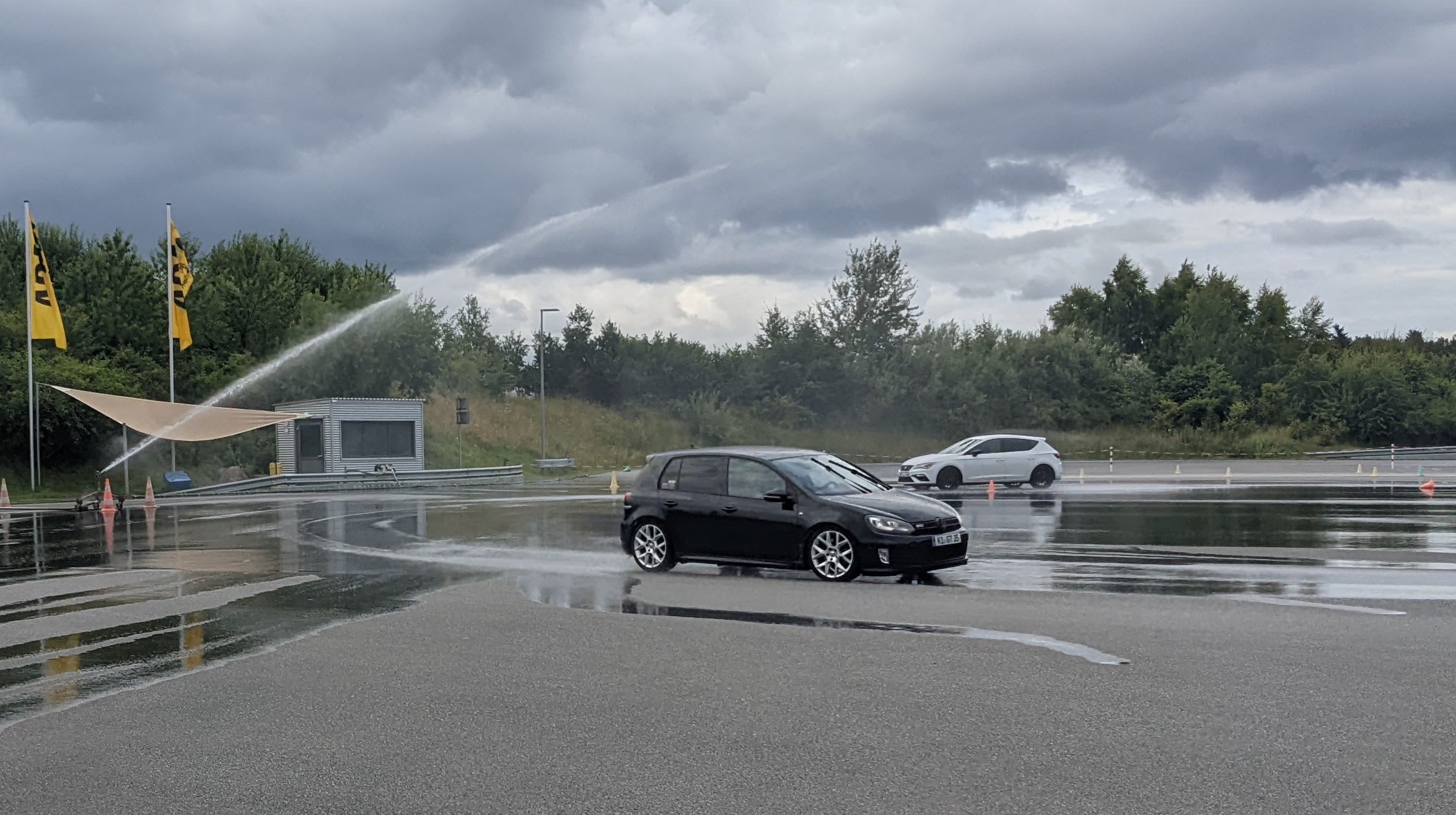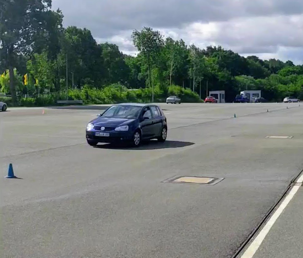 Norddeutscher Sommer auf dem Verkehrsübungsplatz in Boksee: bei Temperaturen unter 20°C und gelegentlichem Regen konnten die Kfz-Mechatroniker ihre Autos und Ihre Reaktionsfähigkeit unter Anleitung eines erfahrenen Trainers testen. Wie lang ist der Bremsweg, welche Geschwindigkeit erreiche ich bei der Kreisfahrt und wann bricht mein Fahrzeug aus waren einige Fragestellungen während des Tagestrainings. Das eigene Auto in Gefahrensituationen kennenzulernen, hat die Azubis beeindruckt und nachdenklich gemacht. Immer wieder zu hören, wie wichtig der Reifen als einziger Kontakt zur Fahrbahn ist, verhallt oftmals, aber zu spüren, dass der Bremsweg doppelt so lang ist wie bei den Mitschülern, nur weil der Reifen schon 21 Jahre alt ist, das beeindruckt schon.