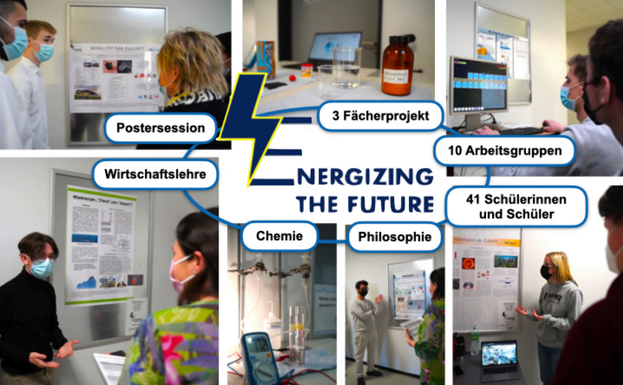 Am Freitag, den 28.1.22 erfolgte im Rahmen einer wissenschaftlichen Postersession die Präsentation der Arbeitsergebnisse unter reger Teilnahme anderer Klassen, der Schulleitung und Lehrkräfte auf dem Flur des Beruflichen Gymnasiums unter Berücksichtigung der geltenden Hygieneauflagen. Bemerkenswert war die Entwicklung einer Computersimulation sowie die Einbindung von naturwissenschaftlichen Experimenten begleitend für die Posterpräsentation. Nach dem Wochenende am Montagabend, den 31.1.2022 war Einsendeschluss für die Abgabe der schriftlichen Ausarbeitung für die Fächer Chemie, Wirtschaftslehre und Philosophie, welche unter anderem kreativ als Podcast, Blogs, Vlogs, Lehrvideo und/oder Internetseite vrgl. https://energizing.munso.de eingereicht wurde.