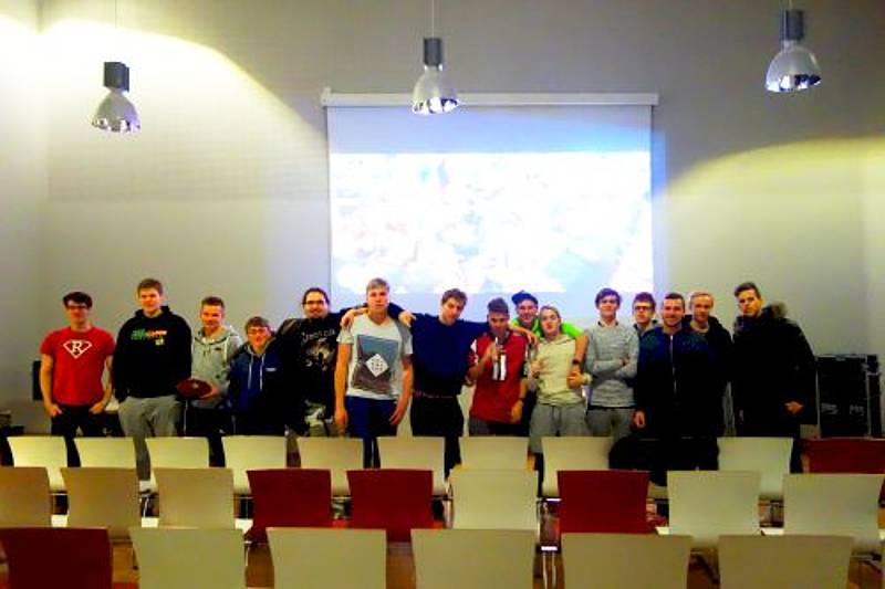 Um 21.00 Uhr am Sonntag, den 05.02.2017 traf man sich zunächst zu einem Flagfootball-Turnier in der Hein-Dahlinger-Halle. Bei der körperkontaktlosen Variante des US-Spiels mit dem eierförmigen Ball wurden auch Novizen – darunter ein Kollege und FOS-Schüler – in die Spielregeln eingeweiht.